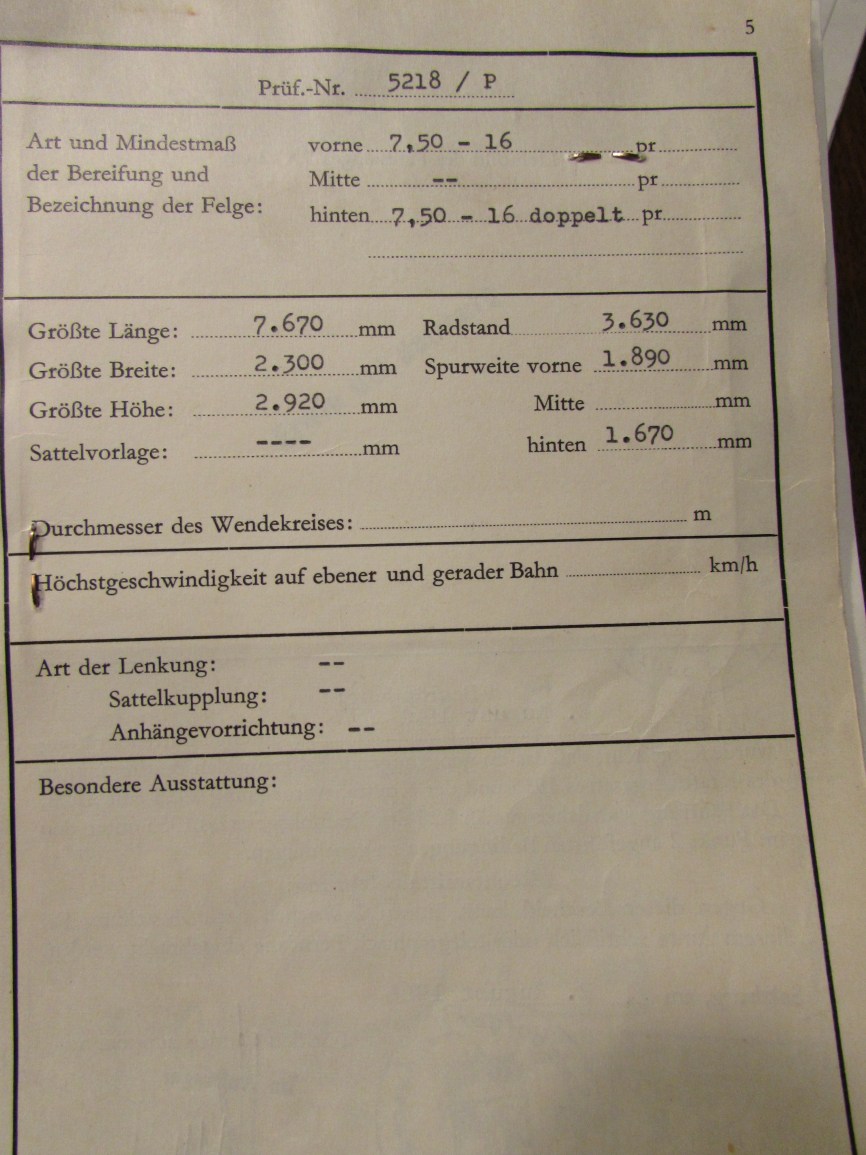• Eigengewicht: 5700 kg, höchstzulässige Belastung: 2400 kg, höchstes zulässiges Gesamtgewicht: 8100 kg