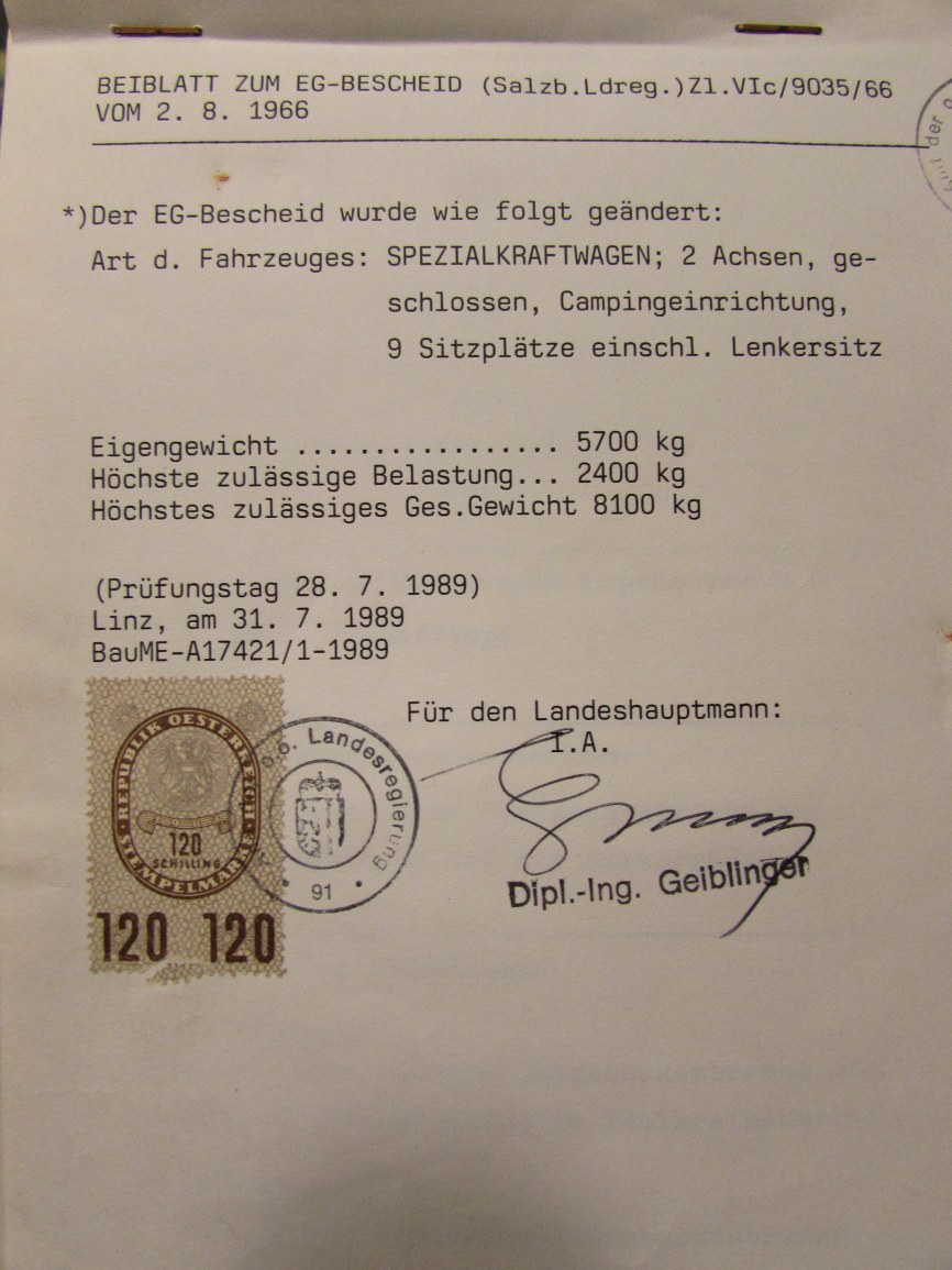 • Art des Fahrzeuges: Spezialkraftwagen, 2 Achsen, geschlossen, Campingeinrichtung, 9 Sitzplätze einschließlich Lenkersitz