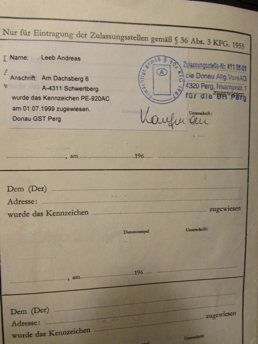 • Typenschein = Einzelgenehmigung (Besitzernachweis)