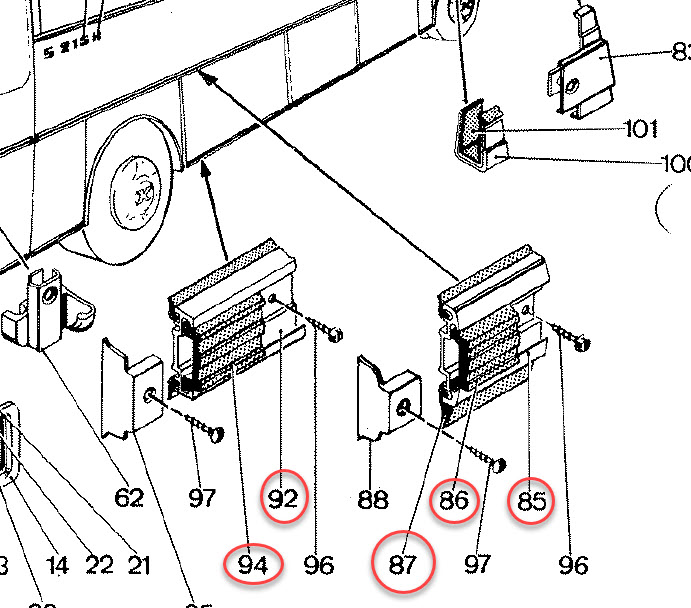 Hat jemand evtl. die passenden Happich-Nummern zu den rot angekringelten Teilen parat?