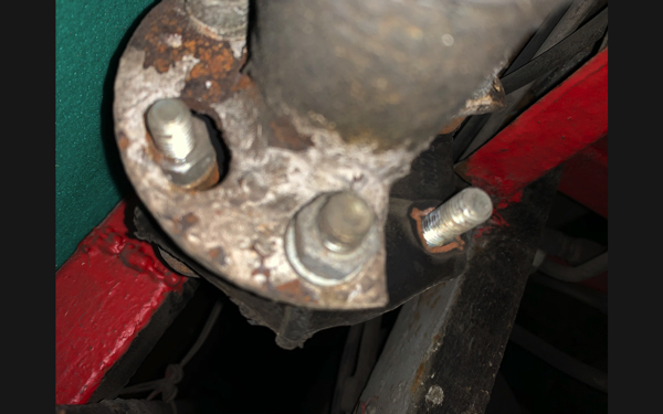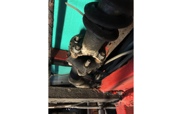 In Foto2 sieht man deutlich das ein Stück vom Flansch ab gebrochen ist, denn man sieht ja dort die vielleicht genannte Hardyscheibe mit frei stehender Schraube ohne Mutter und links oben ist wohl das Loch so groß das man nen Hut durch schmeissen kann.
